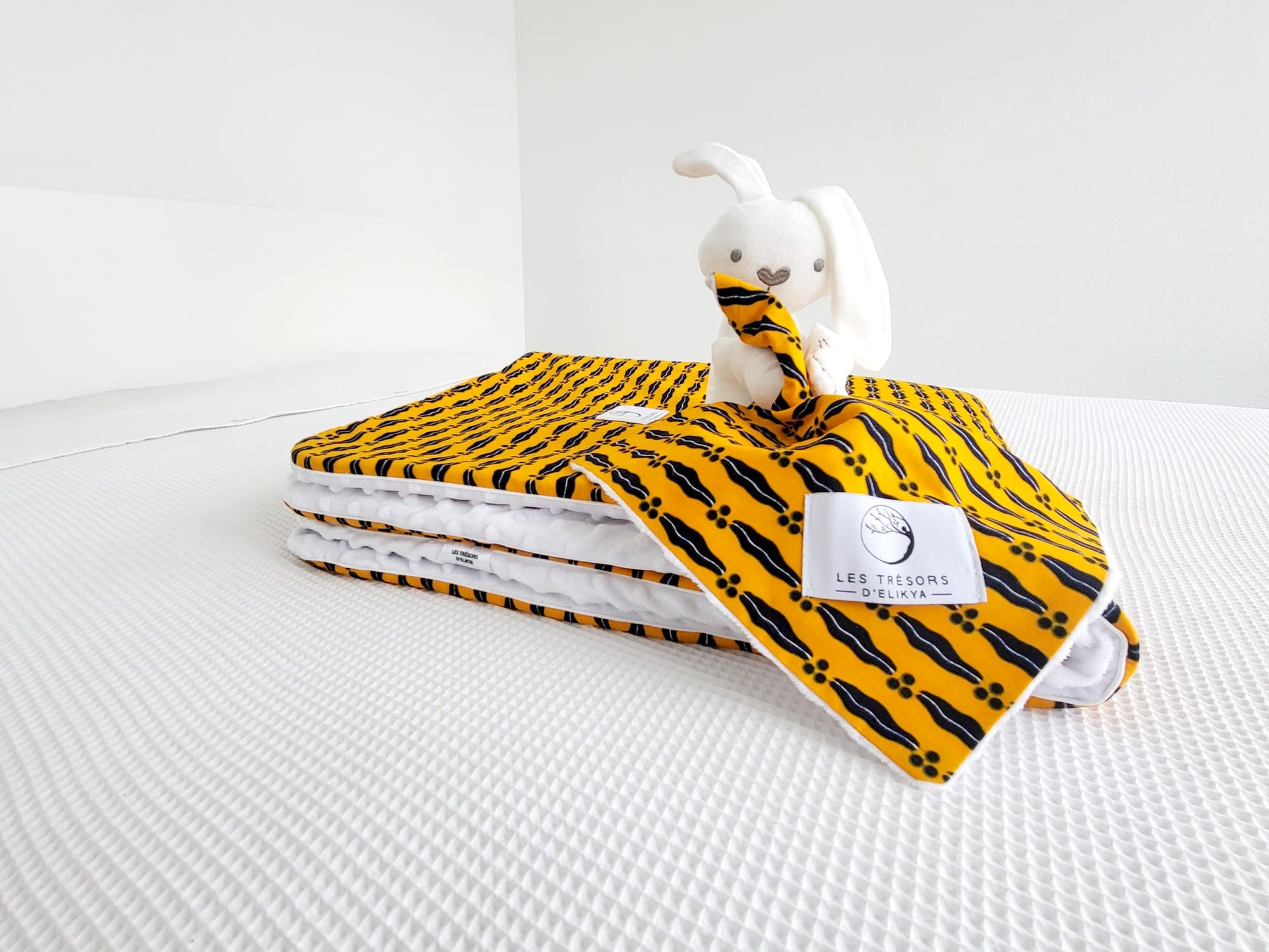 Matières : Tissu Wax en coton, tissu Minky ultra-doux et rembourrage en ouate pour un confort douillet.