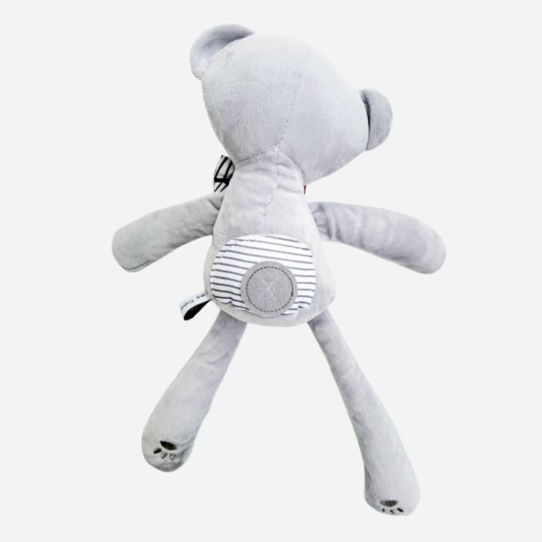 Ourson Gris Élégant avec son Noeud Papillon Wax : "Fleurs de mariage rouges & blanches".